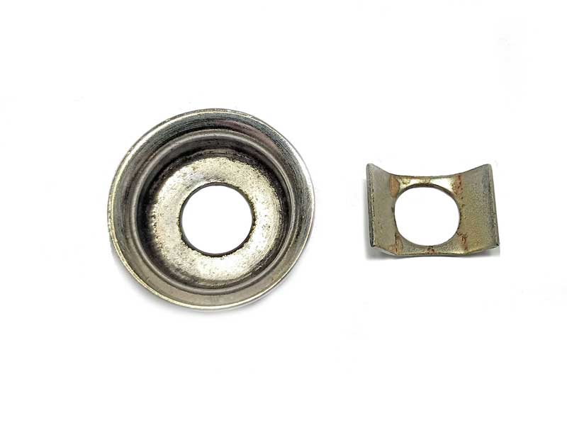 Traditional Telecaster stamped steel jack cup and retainer clip.