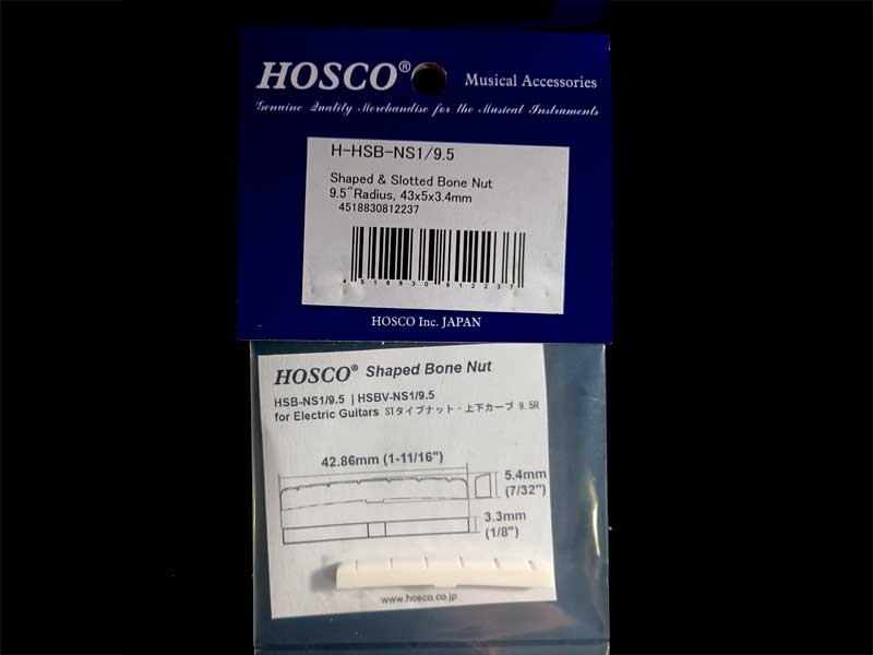 Slotted radiused bone nut with tab - leave tab to use with flat nut slots; remove tab to use with 9.5" radius curved nut slots.